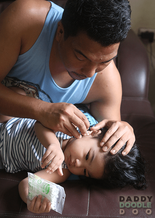 I tried using the mini-cotton buds on Twinkle’s ears but I find that the large cotton buds is much safer to use because of the safety rim that acts as a stopper and limits penetration to prevent ear drum piercing. No need to worry because the cotton stays in the bud no matter how many times you twist and turn it. Our youngest loves getting her ears cleaned because she feels ticklish every time. I can tell that she feels how soft the cotton is. Well, what can I say ? It’s made of 100% cotton, that’s why.